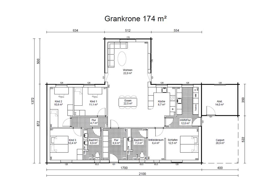 - Grundfläche: 174 m²
