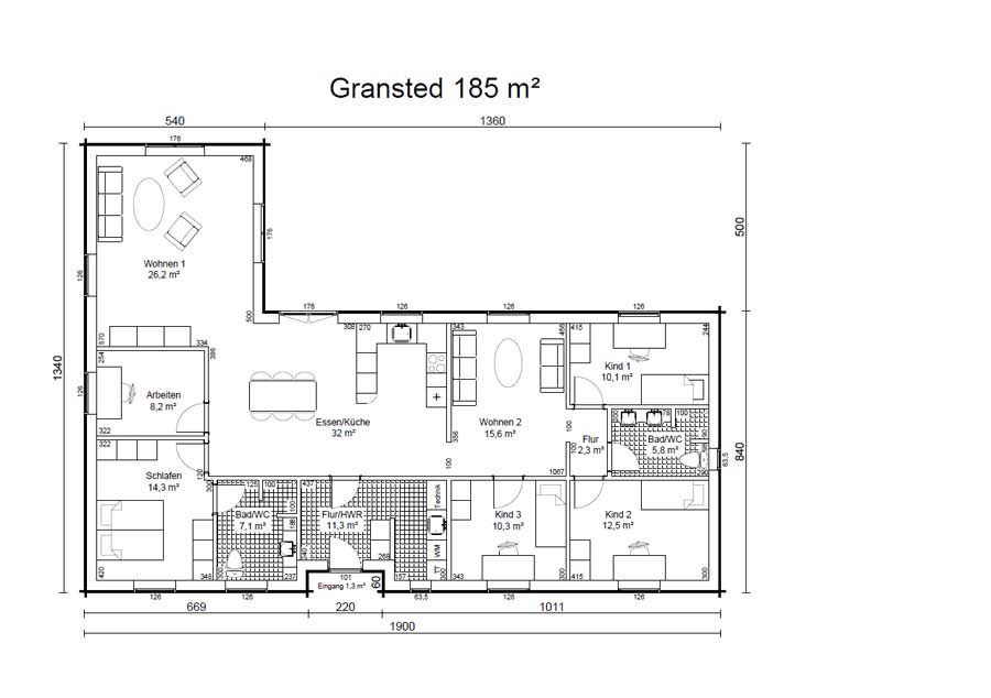 Das Winkelhaus im typisch dänischen Stil beispielsweise, mit einem großen, einladenden Küchen- und Wohnbereich, großzügigen Zimmern und zwei Bädern bietet Platz für die große Familie.