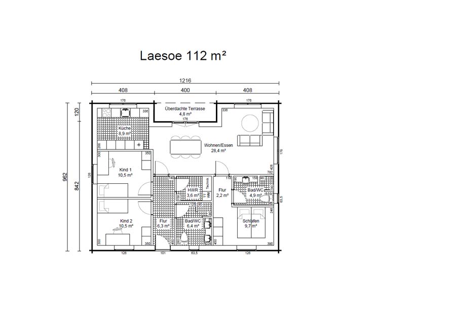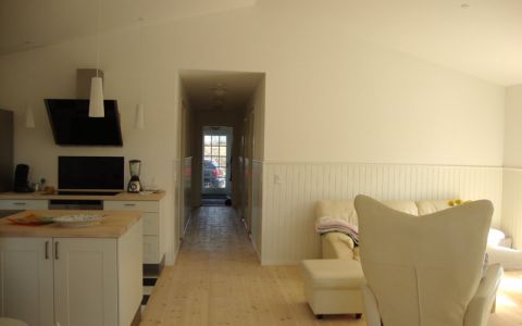 Dieses Beispiel ist "Typisch Dänisch". Klare Raumaufteilungen werden durch schräge Wände aufgepeppt.
