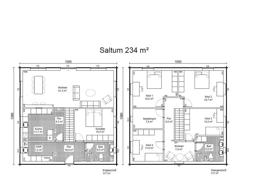 - Grundfläche: 234 m²