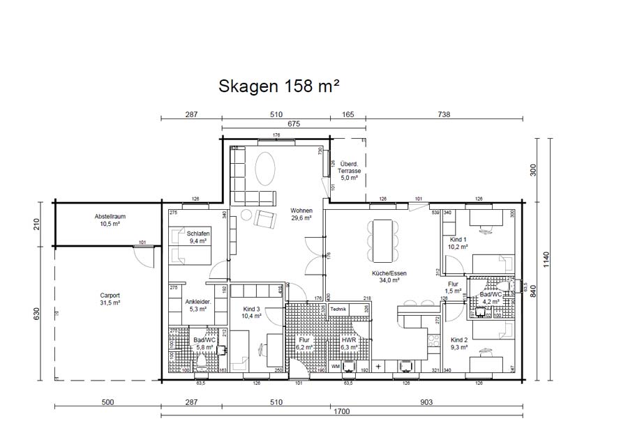 - Grundfläche: 158 m²