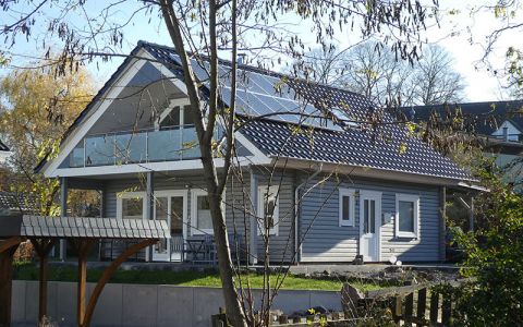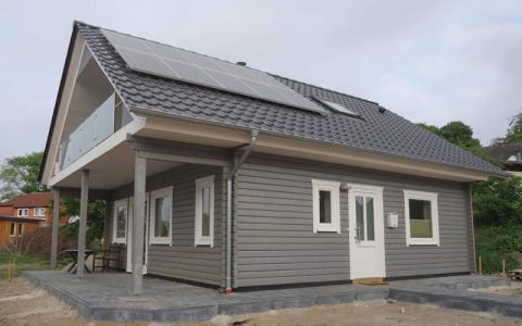 Uwe Meyer hat in Canow ein 1½-geschossiges Haus mit überdachte Terrasse gebaut.