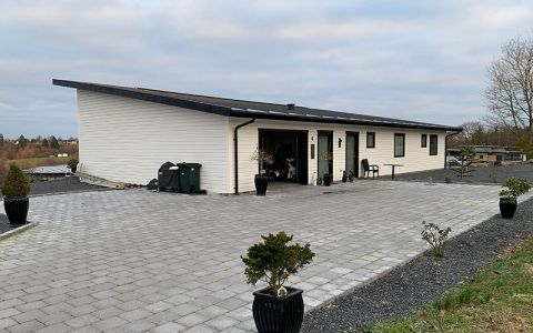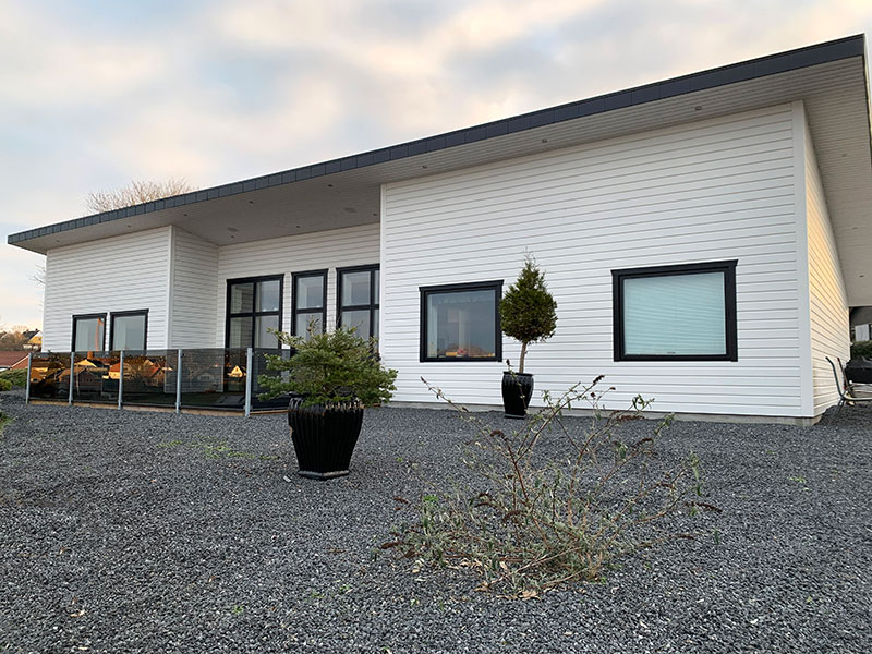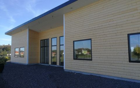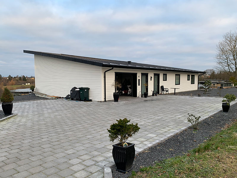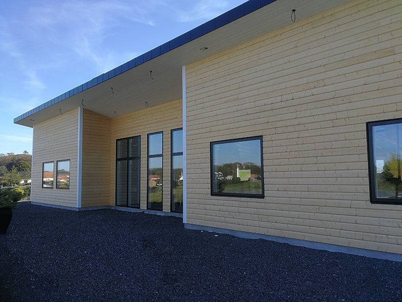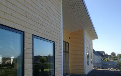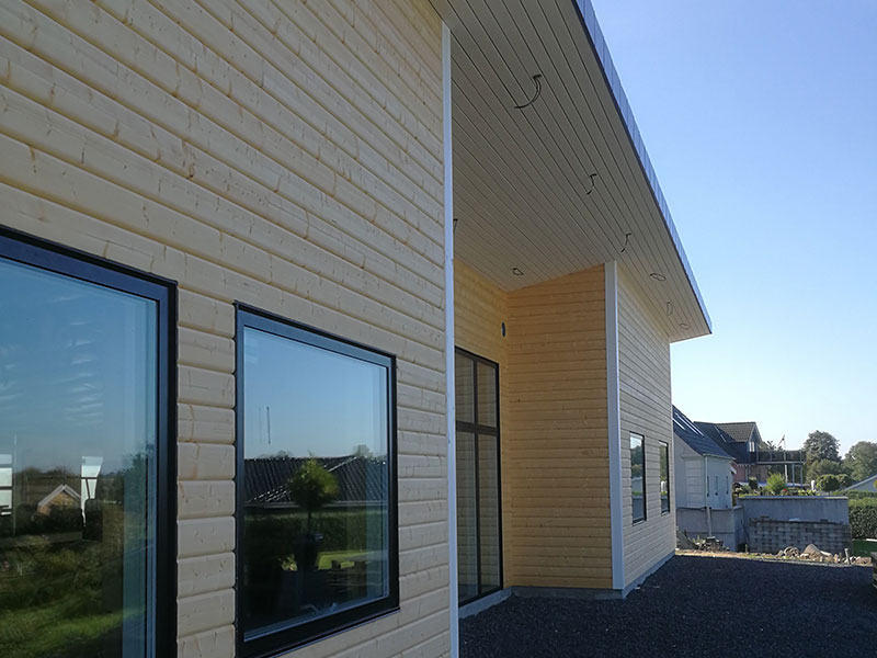 Ein ganz besonderes und wieder einmal individuelles Holzhaus mit einem modernen Pultdach und einseitiger Dachneigung
