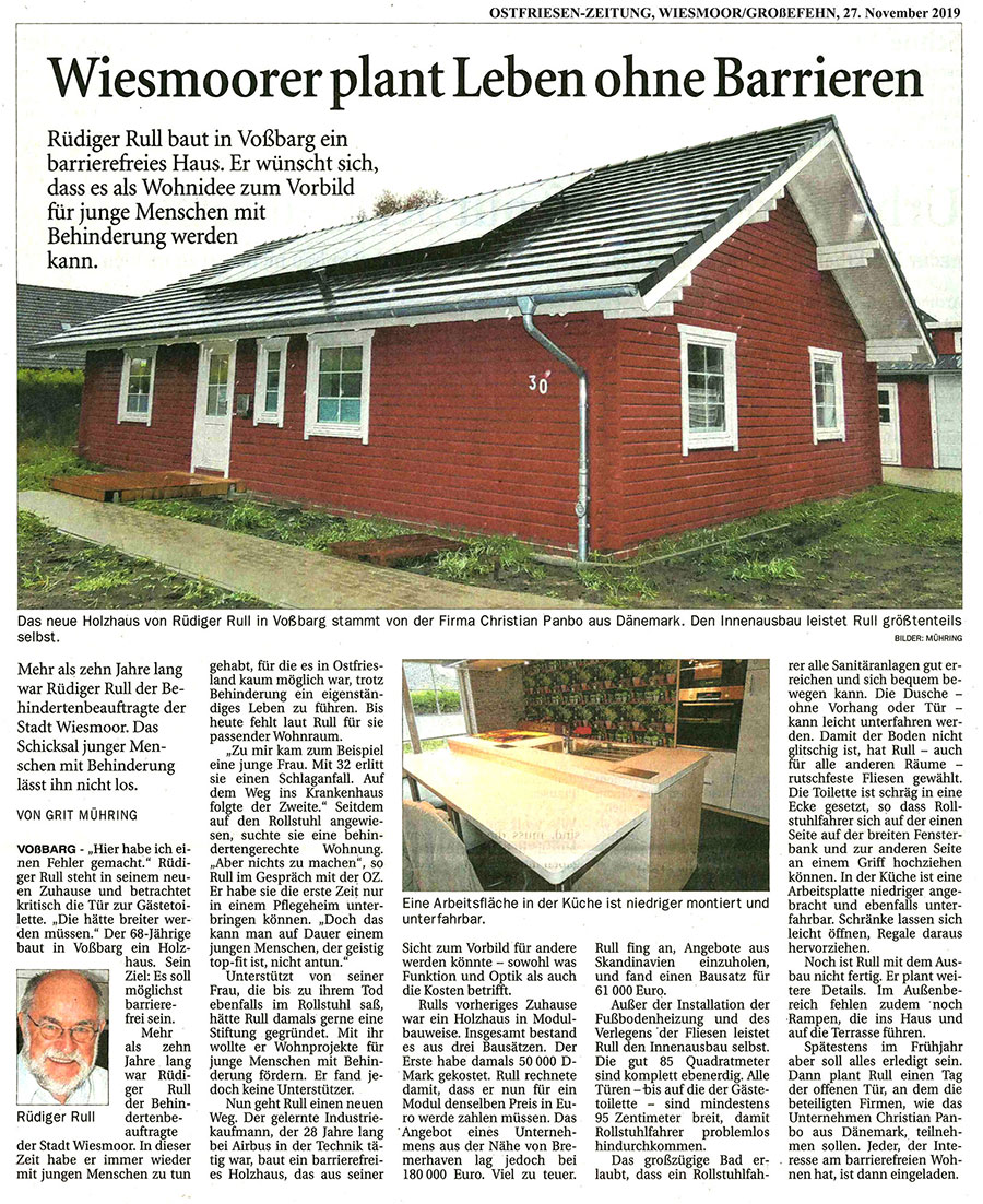 Wiesmoorer plant Holzhaus Panbo Blockhaus ohne Barrieren
