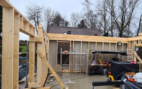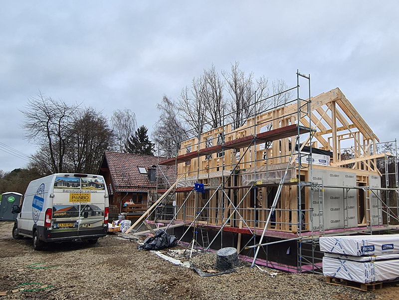 1997 baute Christian Panbo A/S bereits das Blockbohlenhaus der Frau Schmidt. Somit fiel die Entscheidung leicht als nun die Enkelin bauen wollte, sogar auf dem Grundstück direkt neben an. Die Wahl fiel wieder auf ein Christian Panbo Holzhaus. Dieses Mal sollte es aber Holzrahmenbauweisesein.