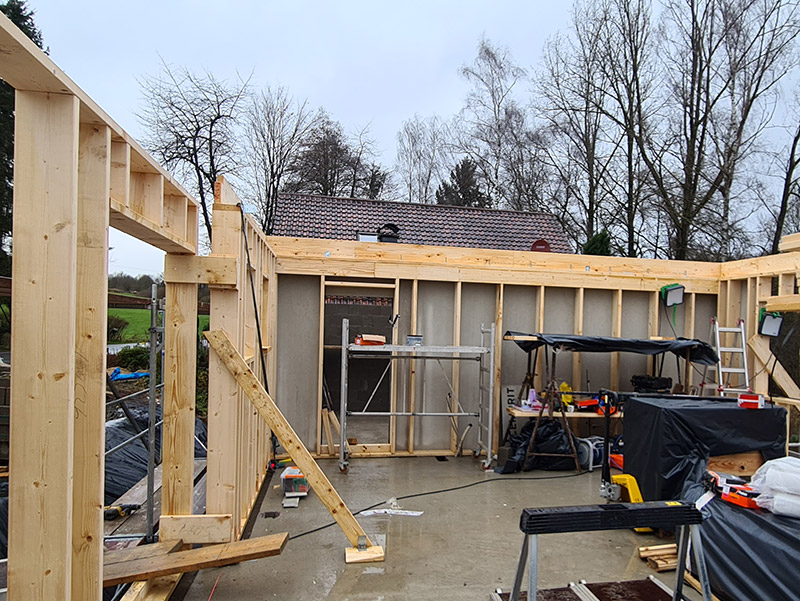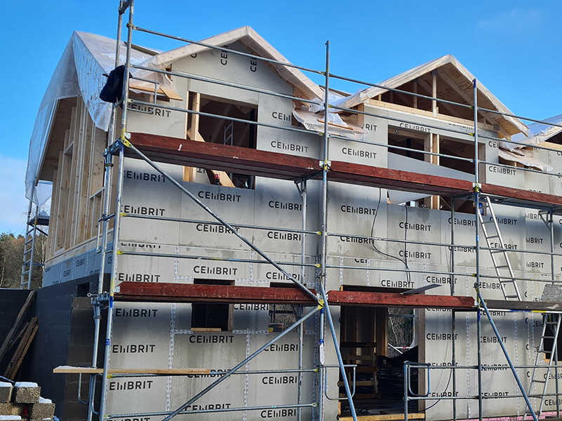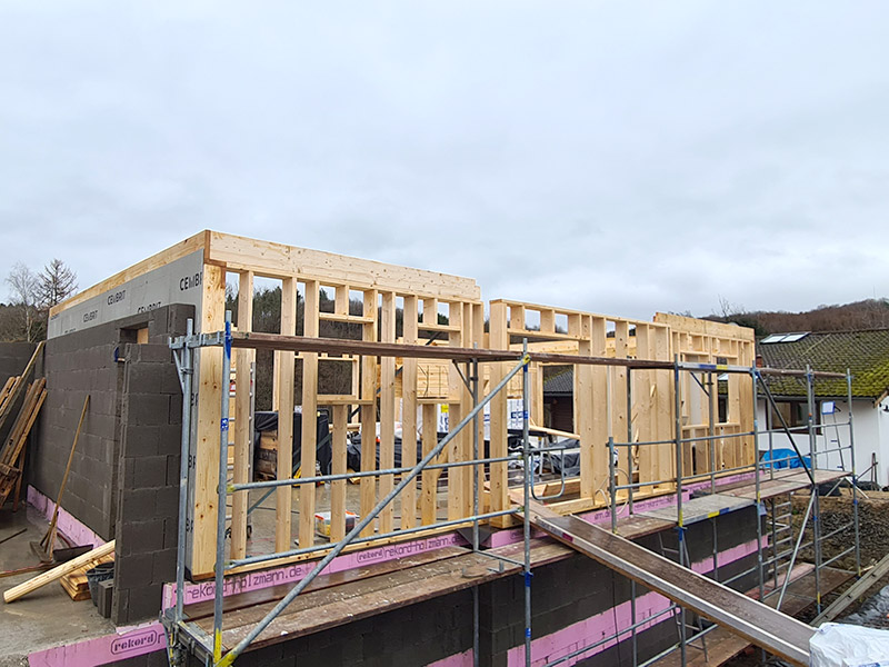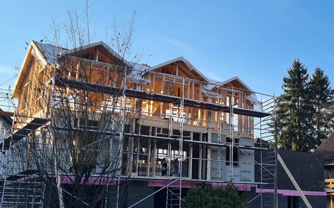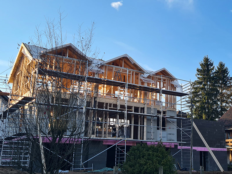 Bei 2-3-geschossigen Häusern empfehlen wir grundsätzlich immer unsere Holzrahmenbauweise mit doppeltem Windklimaschirm. Perfekt angepasst an die großen Wetter- und Windherausforderungen unserer Zeit.